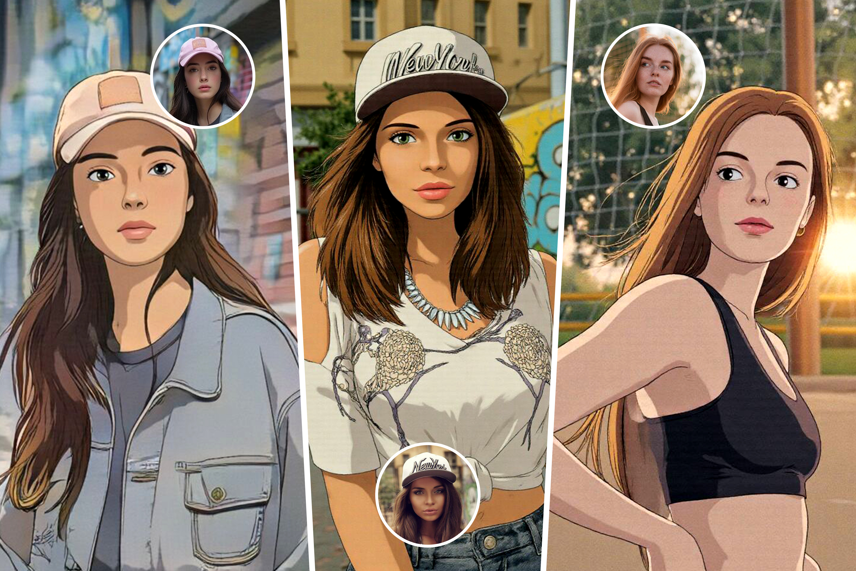 Ghibli-inspired softness and classic anime clarity. Dreamy enough to look kawaii, real enough to keep facial features recognizable.
